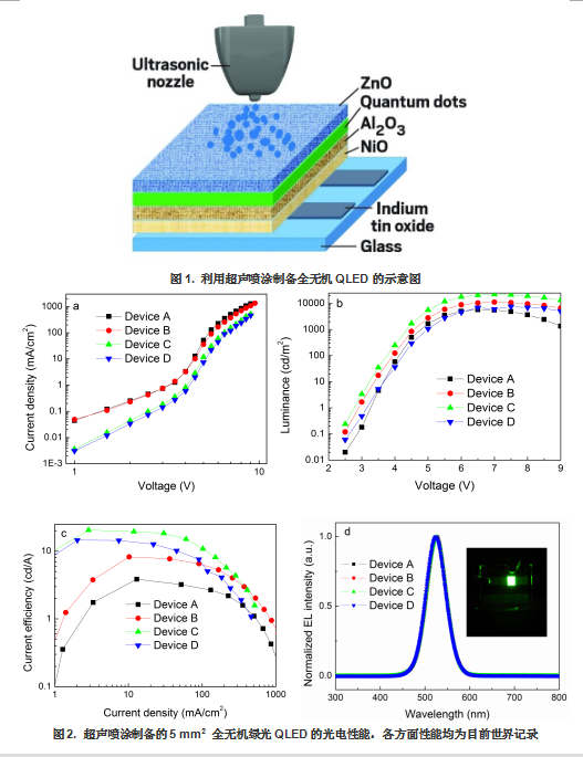近日,公司BG大游张汉壮、纪文宇教授课题组与电子公司谢文法教授课题组合作,利用超声雾化喷涂技术,制备了迄今为止性能最佳的全无机量子点电致发光器件(QLEDs)(ACS Photonics 2017, DOI:10.1021/acsphotonics.7b00216)。