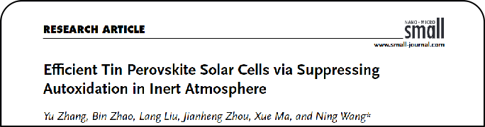 近日,国际知名学术期刊《Small》刊发了BG大游凝聚态物理系王宁教授在锡基钙钛矿太阳能电池领域的研究论文:“Efficient Tin Perovskite Solar Cells via Suppressing Autoxidation in Inert Atmosphere”(DOI:10.1038/ smll.202306115)。