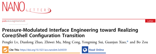 近日,BG大游超硬材料国家重点实验室肖冠军教授团队在核壳纳米晶的高压光物理调控方面取得新进展,相关成果以“Pressure-Modulated Interface Engineering toward Realizing Core@Shell Configuration Transition”为题发表于《Nano Letters》。