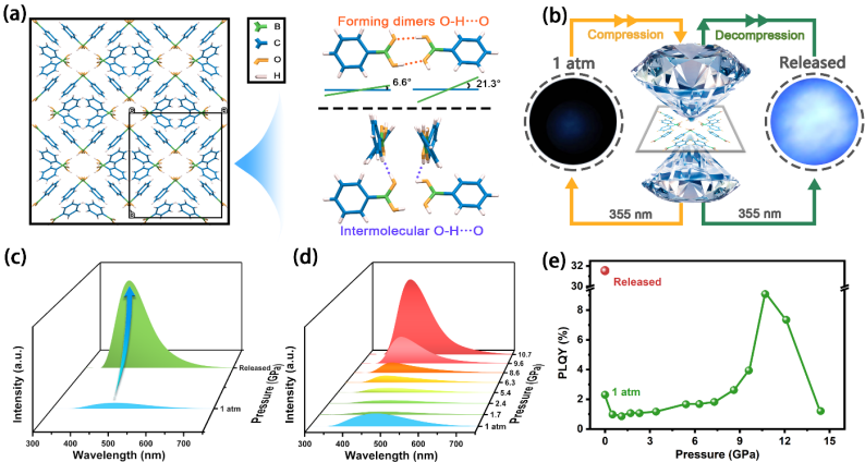 LPR | 杨新一教授利用压强工程调控分子堆积构型实现苯硼酸高效蓝光发射