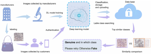 创新性地将抗氧化Cu纳米线与人工智能技术深度整合,成功构建出具有智能鉴别功能的防伪认证系统。该体系依托基于深度学习验证框架,创新耦合了具有多层级特征提取能力的卷积神经网络分析算法。由Cu纳米线构建的智能防伪标签展现出突破性性能:其不仅在2000次高强度机械弯折测试中保持稳定读取功能,更在85 ℃高温配合85%极端湿热的环境下,历经144小时严苛考验仍维持95%以上的特征匹配度,该数据与标准数据库对比呈现显著优势,充分验证了体系卓越的环境耐受性与结构稳定性。本研究成果为增强标签材料抗老化性能方面提供了有效策略,在包装工程、安全防护、电子器件等多领域开辟创新应用前景。
