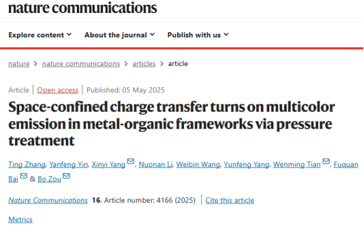 Nat. Commun.| 杨新一教授在高压诱导金属有机框架材料多色可调荧光/磷光方面取得新进展