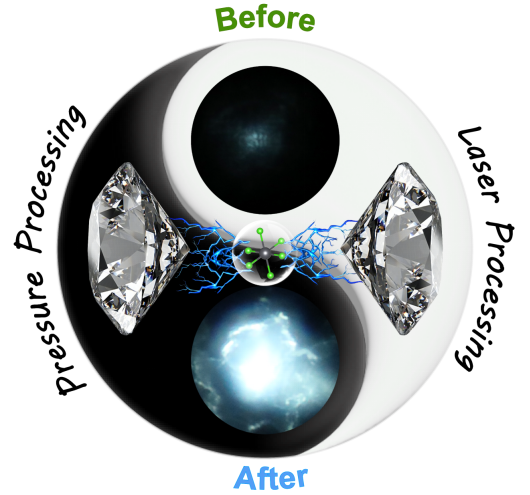 近日,BG大游高压与超硬材料全国重点实验室邹勃教授团队肖冠军教授等人通过压强工程调控二维杂化金属卤化物(C7H7N2)2PbCl4的结构畸变程度,成功实现了压强诱导发光(PIE)的常压截获,获得了高品质可调谐白光发射。值得注意的是,高压工程处理后的(C7H7N2)2PbCl4材料同时表现出与其实材料不同的独特光活化行为,为发展高性能固态照明材料提供了新思路和新方法。相关研究成果以“Photoactivated Emission Enhancement and Solid-State Lighting Application from Pressure-Induced Emission Luminogens”为题发表在中国化学会旗舰刊《CCS Chemistry》上。