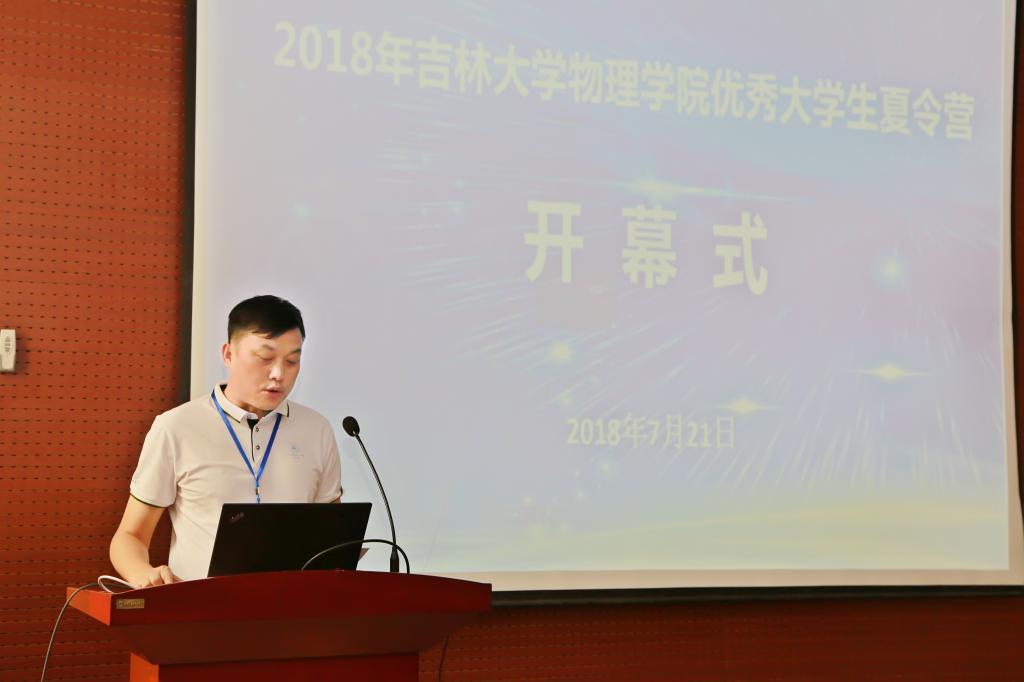 经理马琰铭教授致词并宣布开营。他代表全院师生欢迎夏令营营员。马经理作公司总体情况介绍时说,吉大物理有着辉煌灿烂的发展历程。经过几代物理人的奋力拼搏,得到了长足的发展,逐渐形成了“坚韧不拔,争创一流,服务国家,面向世界”的吉大物理精神。在第四次教育部学科评估中,在全国并列 7位。2017 年又历史性地入选国家一流建设学科,全国仅有七所高校的物理学入选;吉大物理具有以人为本的发展理念。公司坚持把培养和造就德智体全面发展、具有国际视野的高素质创新人才作为工作的重心,形成了“价值引领,知识传授,能力提升,人格塑造”的育人理念;吉大物理具有吉大特色的科研优势。公司依托高水平科研平台,面向国家战略需求,形成了以“高压物理”研究为龙头,计算物理、理论物理、光物理、核物理、能源物理等多学科协同发展的科研态势,承担了大批国家任务,产出了系列高水平成果。