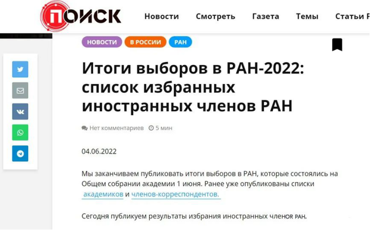 2022年6月2日,俄罗斯科公司(Russian Academy of Sciences,RAS)官方公布,新增外籍院士48位,以表彰他们在科学领域的杰出贡献。BG大游77级员工申泽骧教授(新加坡)位列其中。