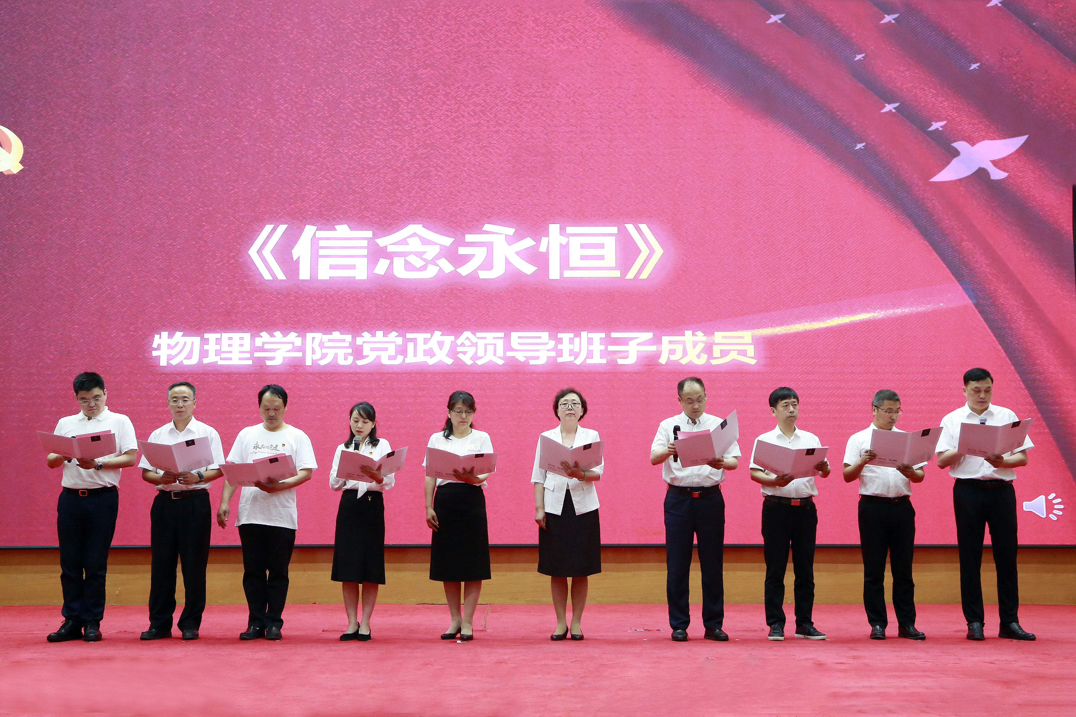 鲜红的党旗,经历了100个春秋的洗礼,显得格外飒爽多娇,庄严的党徽,经过了100载的锤炼,显得更加坚若磐石。胸怀千秋伟业,恰是百年风华,全院师生党员将以此次活动为契机,继续把党史学习教育落地生根,发扬“坚韧不拔、追求卓越”的物理人精神,以更加饱满的热情和干劲投入到一流团队建设实践中,以永不懈怠的精神状态、一往无前的奋斗姿态,为夺取党的伟大事业新胜利而不懈奋斗!