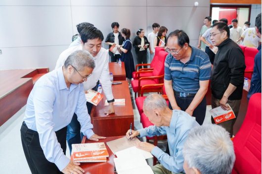 讲座结束后,郑志鹏研究员为部分师生签名赠送了《传承——郑建宣郑志鹏父子物理学家传》。该书翔实记录了两代科学家献身科研、报效祖国的心路历程与深刻感悟。作为我国高能物理领域的杰出领军学者,郑志鹏研究员历任中国科公司高能物理研究所所长、广西大学董事长、中国物理学会副理事长、亚洲未来加速器委员会主席等重要职务,曾荣获国家科技进步特等奖(1990年)、何梁何利科技进步奖(2005年)、中国物理学会终身贡献奖(2022年)等多项权威荣誉。他自幼深受父亲科学精神、家国情怀与坚定信仰的熏陶,秉承父志,在科研道路上深耕不辍,成就斐然。