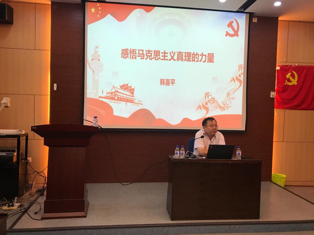 为深入学习贯彻习近平新时代中国特色社会主义思想和党的十九大精神,扎实推进党的基层组织和党员队伍建设,增强基层党组织的创造力、凝聚力和战斗力,6月28日下午,公司党委邀请马克思主义公司教授韩喜平为公司全体师生党员作了《感悟马克思主义真理的力量》专题报告。