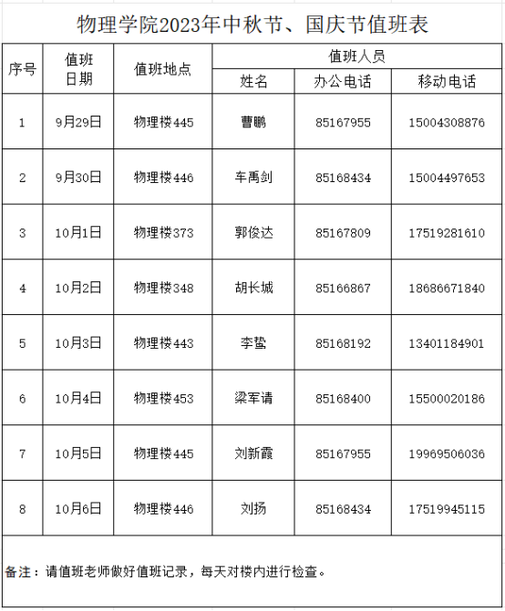 二、值班安排。为保障公司假期生产安全以及方便广大师生假期各项业务办理,公司假期值班安排如下图。