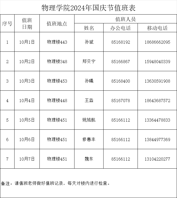 为保障公司假期生产安全以及方便广大师生假期各项业务办理,公司假期值班安排如下图。