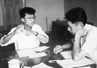 ▲1953 年朱光亚正在对员工陈佳洱进行口试,