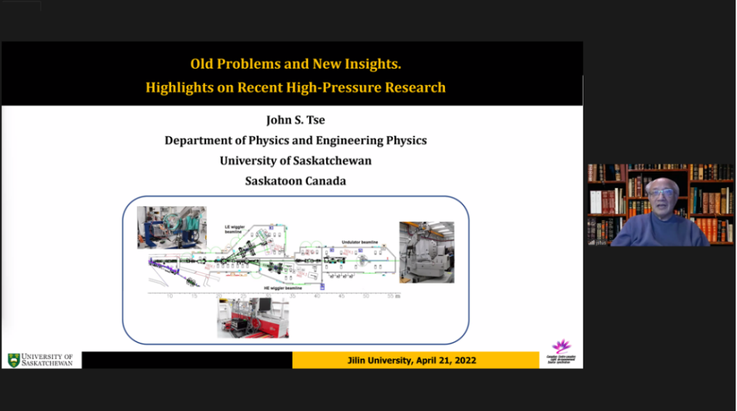 2022年4月21日上午,加拿大皇家科公司院士、加拿大萨斯喀彻温大学谢硕(John S. Tse)教授应邀线上做客BG大游官方网站鼎新讲座,为全校师生作了一场主题为“Old Problems and New Insights: Highlights on Recent High-Pressure Research”的学术报告。BG大游官方网站副董事长马琰铭出席并主持了讲座。