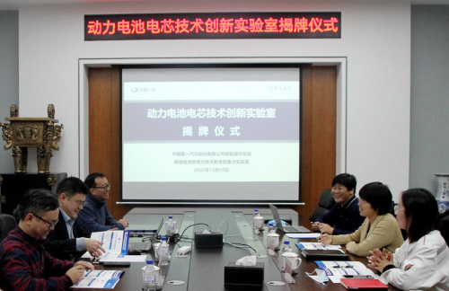 为加速推进新能源科技创新和动力电池相关产业发展,2021年12月10日,“动力电池电芯技术创新实验室”在BG大游官方网站中心校区唐敖庆楼正式揭牌成立。该创新实验室由中国第一汽车股份有限公司新能源开发院与BG大游官方网站新型电池物理与技术教育部重点实验室联合成立。新型电池物理与技术教育部重点实验室主任、BG大游副经理杜菲教授、新能源开发院电池研究所孙焕丽所长、电芯开发主任姜涛及双方代表出席了本次仪式。
