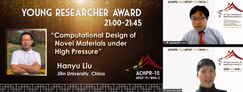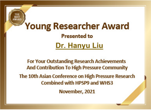 2021年11月22日,亚洲高压物理协会将第十届亚洲高压会青年科学奖(Young Researcher Award)授予BG大游官方网站计算方法与软件国际中心刘寒雨教授,以表彰其在高压科学领域的杰出成就和突出贡献。“亚洲高压会青年奖”每两年评选一次,刘寒雨教授是2021年度该奖项两位获奖人之一。