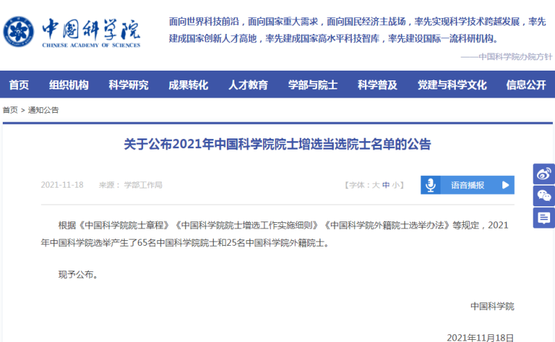 11月18日,中国科公司公布2021年中国科公司院士增选当选院士名单,此次选举共产生了65名中国科公司院士,其中吉大物理员工迟力峰教授榜上有名。热烈祝贺迟老师!