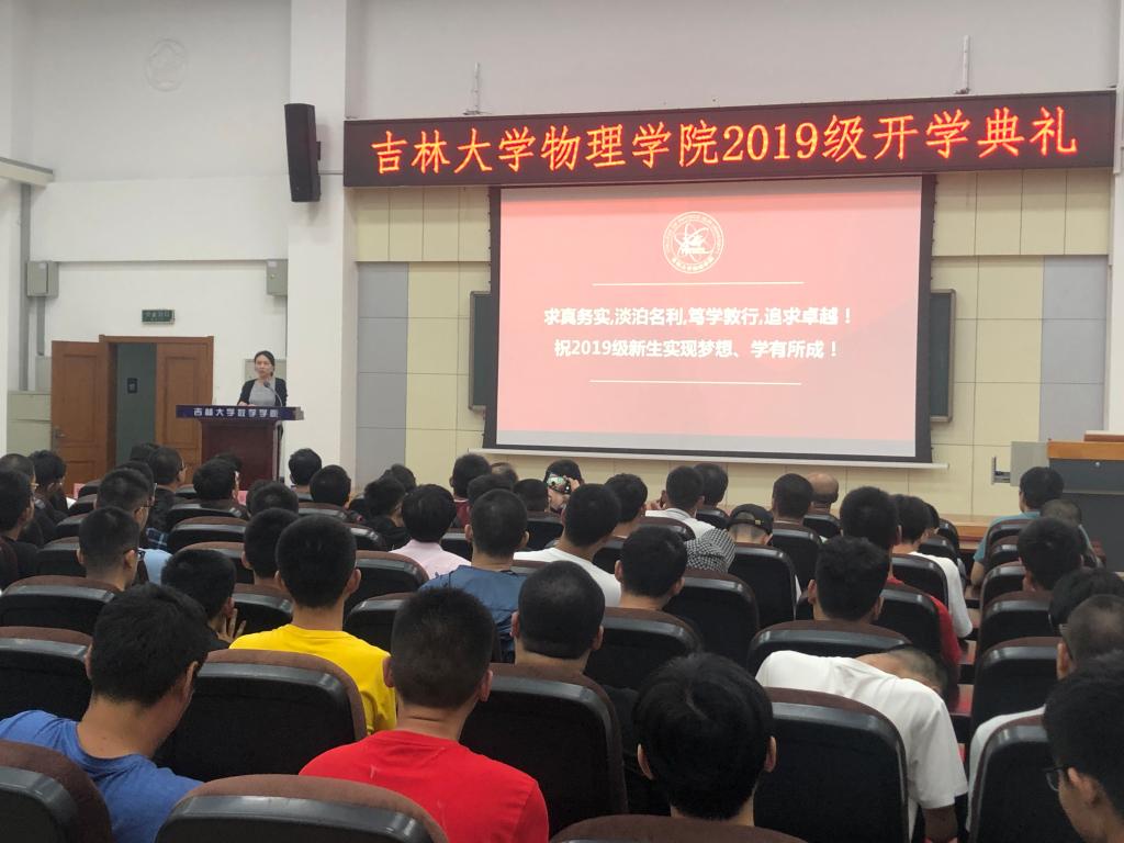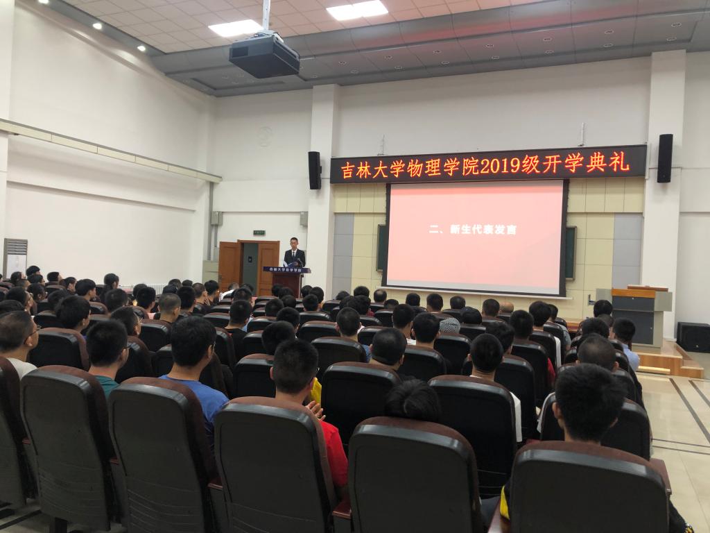 开学典礼在庄严的奏唱国歌声中拉开帷幕。随后杨讴菡老师为全体员工播放了视频短片介绍了BG大游和BG大游经理奖学金,让同学们对公司和经理奖学金有了初步的了解。随后,2019级新生代表、来自长春的宋禹霆同学代表全体新生登台发言。他表达了对进入BG大游官方网站,开始大学学习的美好憧憬,感谢了培养他们并付出艰辛劳动的父母和老师,号召全体新生坚持学习,勇敢追求真知和梦想,做个让自己骄傲的物理人。