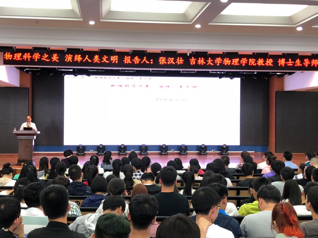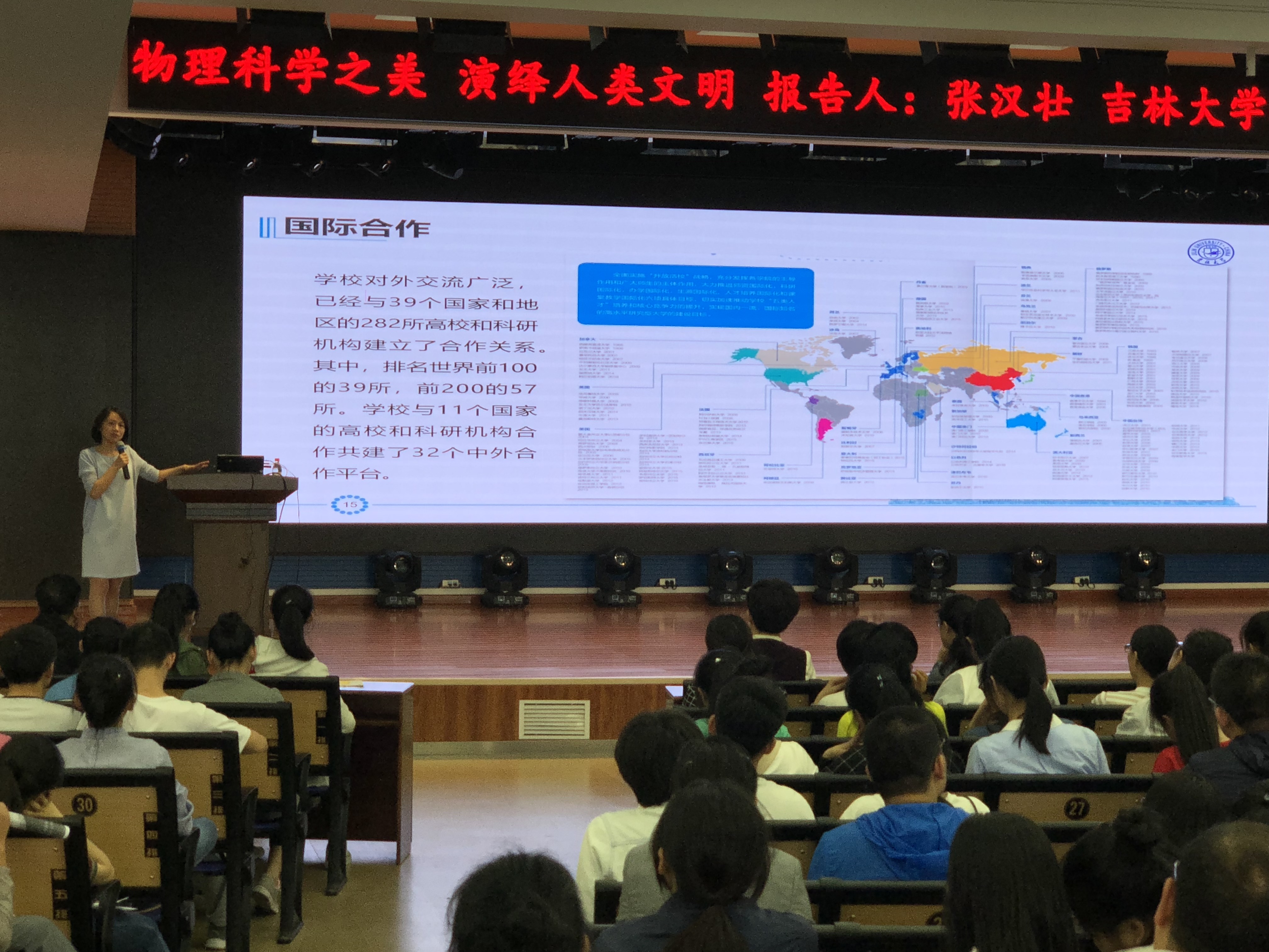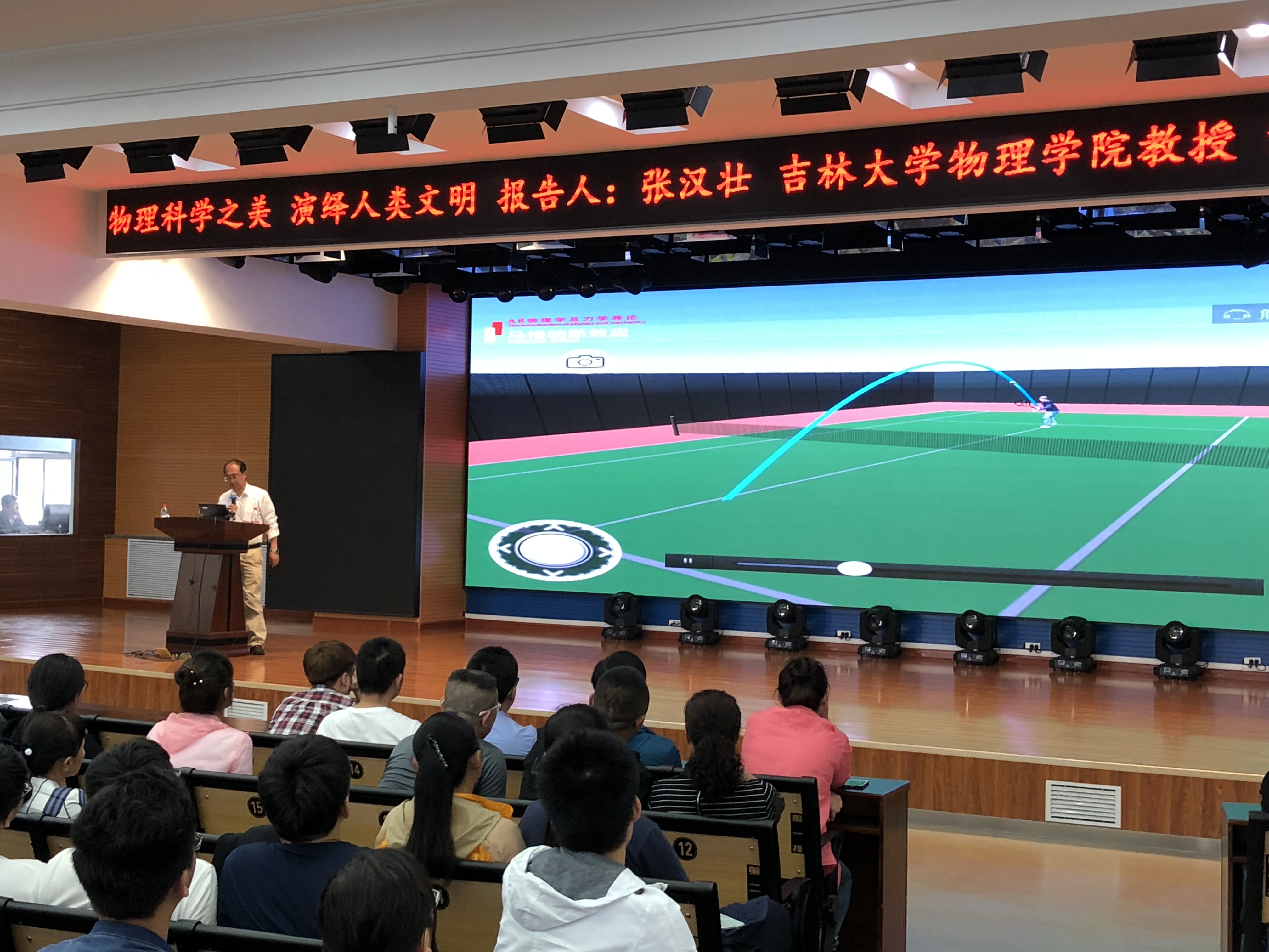 宣讲会第一项由张汉壮教授为到场的员工及家长做了题为“物理科学之美,演绎人类文明”的报告。张汉壮教授将物理学基本知识领域以“山”、“饼图”等形式化繁为简进行了全方位展示,他以“无形的力量之手”、“世界冷暖的奥秘”等形象趣味的标题为线索回顾了物理的发展历程,阐述了“见物讲理,以理造物”的物理逻辑。“很多员工觉得学物理没用,挣不了大钱,所以对物理兴趣索然”,张教授指出,如今便利舒适的生活条件与物理学的重大突破具有紧密的联系,“物理能让我们了解自然宇宙,指导和引领科学技术活动,培养逻辑思维和探索创新精神”。张汉壮教授还在报告中加入了动画、视频、AR演示等技术手段,将物理知识生动的演示出来,让在场的教师、员工及家长发出一次次热烈的掌声。最后,张汉壮教授对刚刚高考结束的员工表达了最衷心祝福,希望每位同学都可以取得理想的成绩,考入自己心仪的大学。