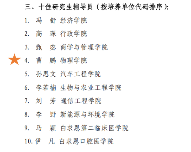 BG大游在研究生思政工作考核及“优秀研究生辅导员”考核中荣获BG大游官方网站2024年度“研究生思政工作先进单位”,研究生辅导员曹鹏获评BG大游官方网站2024年度“十佳研究生辅导员”。