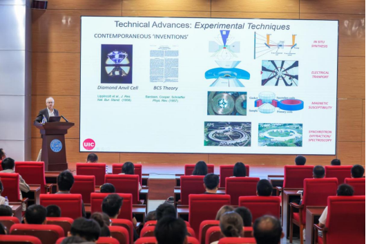 2025年5月30日上午,美国科公司院士、伊利诺伊大学芝加哥分校Russell J. Hemley教授应邀在BG大游官方网站中心校区国际学术大讲堂做客BG大游官方网站鼎新讲座。Hemley教授以“Progress in High Tc Superconductivity Under Pressure”为题,为公司师生带来了一场前沿学术盛宴。