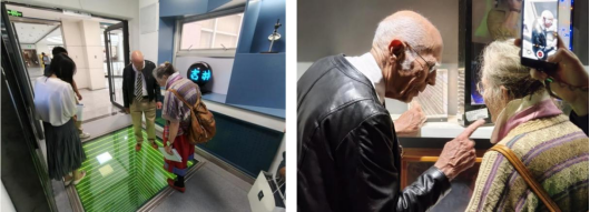 参观过程中,院士夫妇被实验室门口神奇的 “万丈深渊” 光学装置深深吸引。参观后,Svanberg 院士饶有兴致地利用实验室的光学仪器,现场向夫人阐释了其中蕴含的反射与视觉错觉原理。