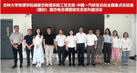 2025 年 6 月 25 日,BG大游官方网站公司党委书记杨景率领公司党委委员、新型电池物理与技术教育部重点实验室主任杜菲,凝聚态物理系教工党支部书记李子亨等,前往中国一汽科技创新基地,与中国一汽研发总院全国重点实验室(国创)固态电池课题组党支部联合开展共建活动。中国一汽研发总院全国重点实验室(国创)固态电池课题组党支部书记、组长孙焕丽以及双方部分党员和科研骨干共同出席了在该基地举行的共建启动会。