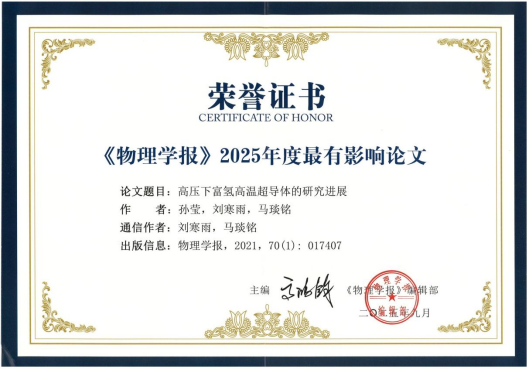 《物理学报》(Acta Physica Sinica)创刊于1933年,由中国物理学会和中国科公司物理研究所主办,是中国历史最悠久、最权威的物理学综合性学术期刊。其“年度最有影响论文奖”旨在表彰在物理学各领域做出突出贡献、引起广泛学术反响的重要研究成果。此次获奖,不仅是对马琰铭团队在高温超导领域所做贡献的高度肯定,也彰显了BG大游在前沿基础研究领域的国际学术影响力。