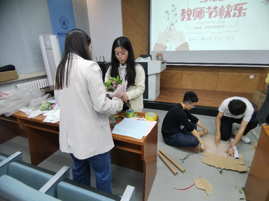 9月9日下午,BG大游众多学子提前在物理楼333会议室精心为BG大游的各位老师们准备着节日的礼物,一封封同学们手写的祝福,流露着学子们的真情实感;一捧捧亲手挑选的花束,散发着对老师们满满的爱意。