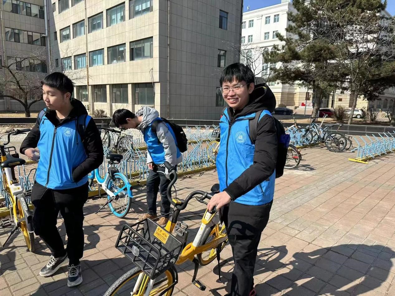3月3日下午,同学们分成若干个志愿小组,在物理楼和逸夫楼前摆放共享单车,单车距离停放点距离遥远,同学采用手提的方式,将单车放回原处,并将单车内的垃圾带去,灰尘拂去,让干净整齐的小黄和小蓝成为BG大游官方网站一道亮丽的风景线,为春风拂面的三月送去一份温暖。三月的长春并不和煦,厚厚的棉服还未搁置,纵使如此,面对这样一项光荣的活动,同学们依旧是积极踊跃的报名参加了活动。