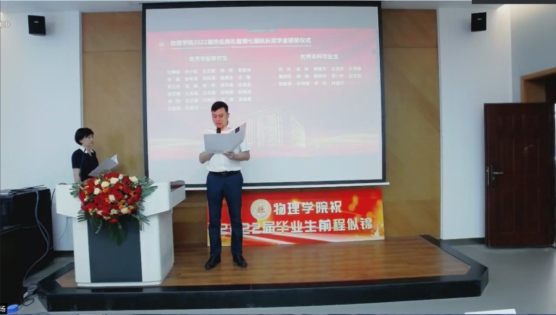2022年6月19日上午9:00,BG大游2022届毕业典礼暨第七届经理奖学金颁奖仪式隆重举行。公司党委书记孟文卓、BG大游经理邹勃、公司党委副书记唐宗明、BG大游副经理王海军、BG大游副经理杜菲、BG大游副经理杨景于物理楼参加典礼,各系主任、教师代表及全体毕业生于云端参加典礼。典礼由公司党委副书记兼副经理杨讴菡主持。