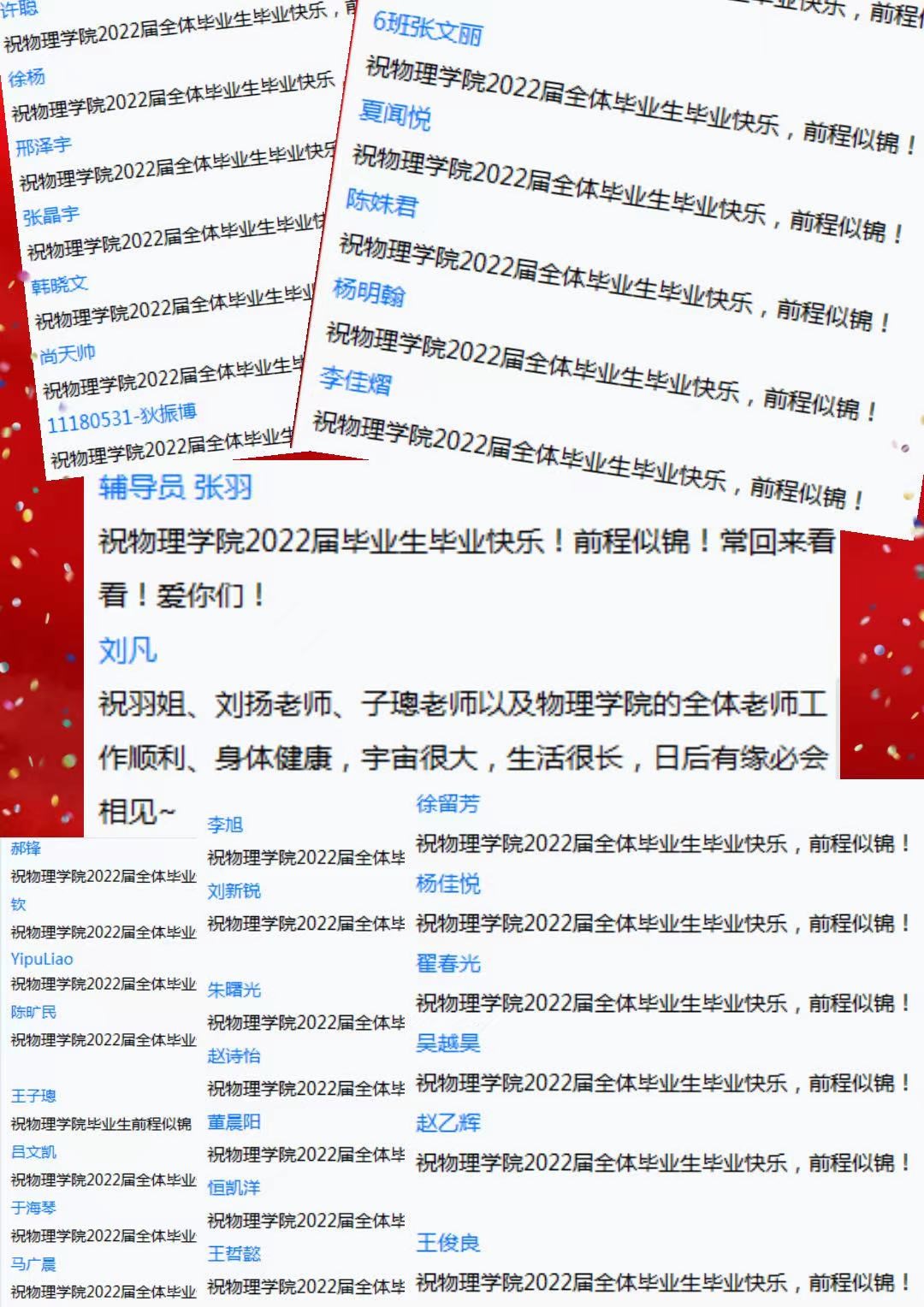 教师代表王海军老师向全体毕业生送上了美好的祝贺与期望。在他看来,人不能离开集体,在学习生活中要明白“利他”的重要性。他用亲身经历教诲同学们,一个人或许很难,但在群体中很多问题都会迎刃而解,BG大游如今辉煌的成就是一代代吉大物理人以坚韧不拔、追求卓越的精神几十年如一日奋斗得来的,希望在同学们共同努力下,让物理学科更好、更强。