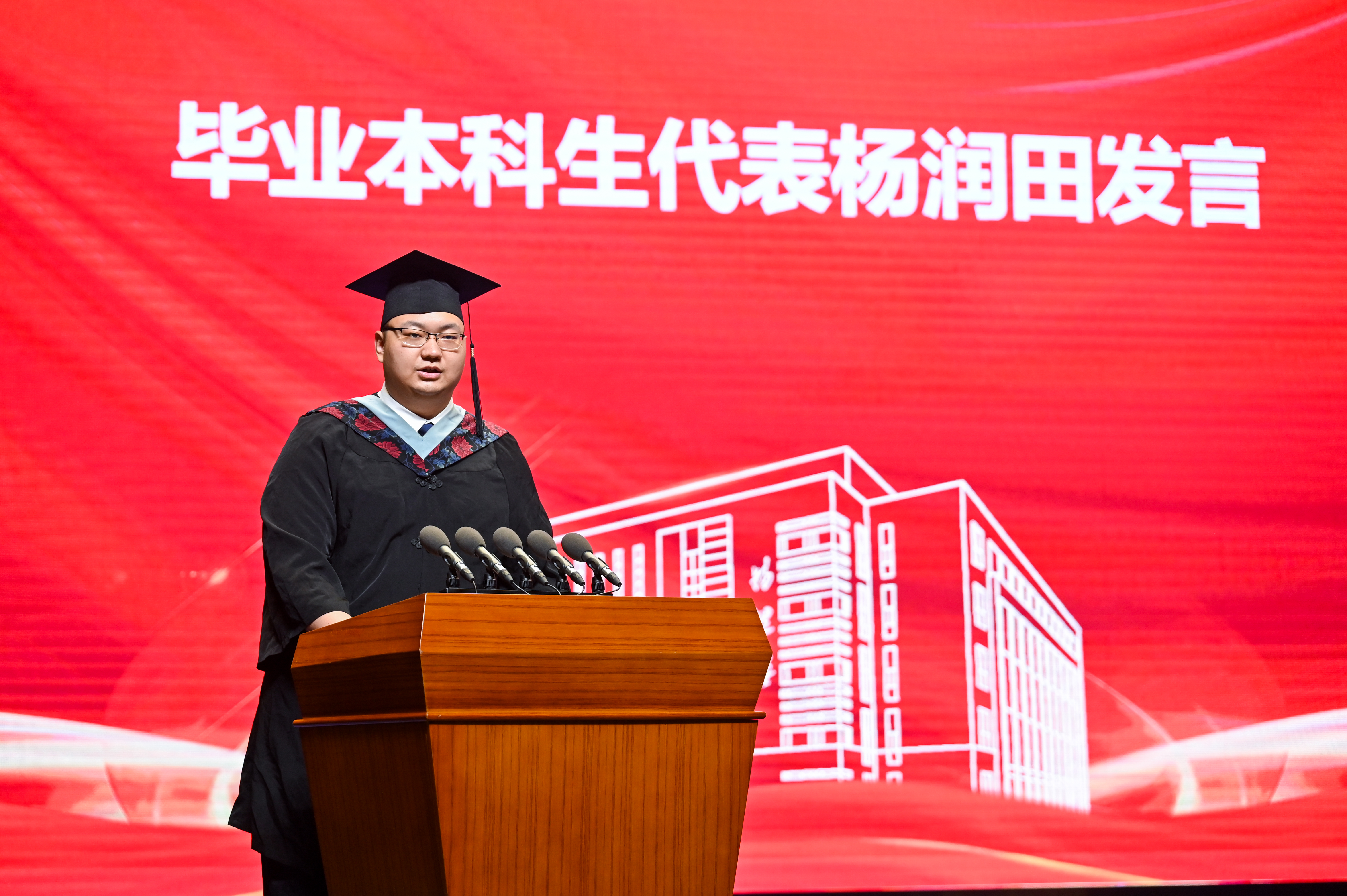 本科生毕业生代表杨润田同学真情实感地表达出对公司、老师、同学的感激之情,并以自身励志的经历鼓励全体毕业生激情拼搏、实现自我。