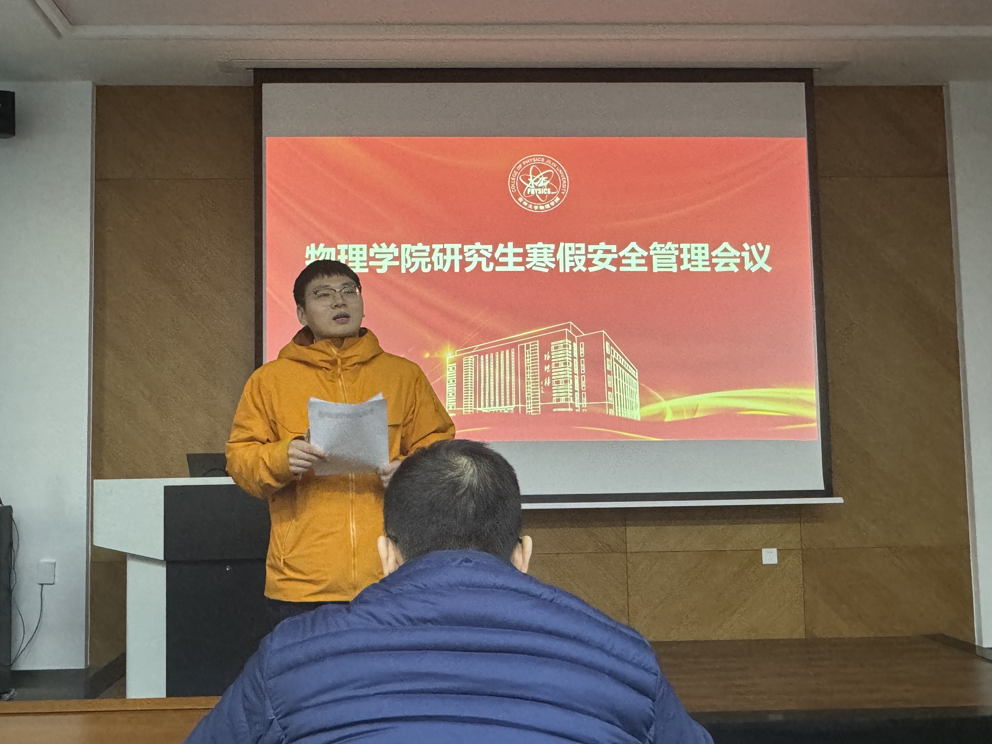 为切实加强寒假期间留校研究生的教育和管理,提高研究生的安全防范意识,确保留校研究生的健康安全,1月29日下午,公司于物理楼333会议室举办寒假留校研究生安全管理会议。会议由公司党委副书记唐宗明主持,研究生辅导员曹鹏、研究生秘书于津强及留校研究生干部参会。