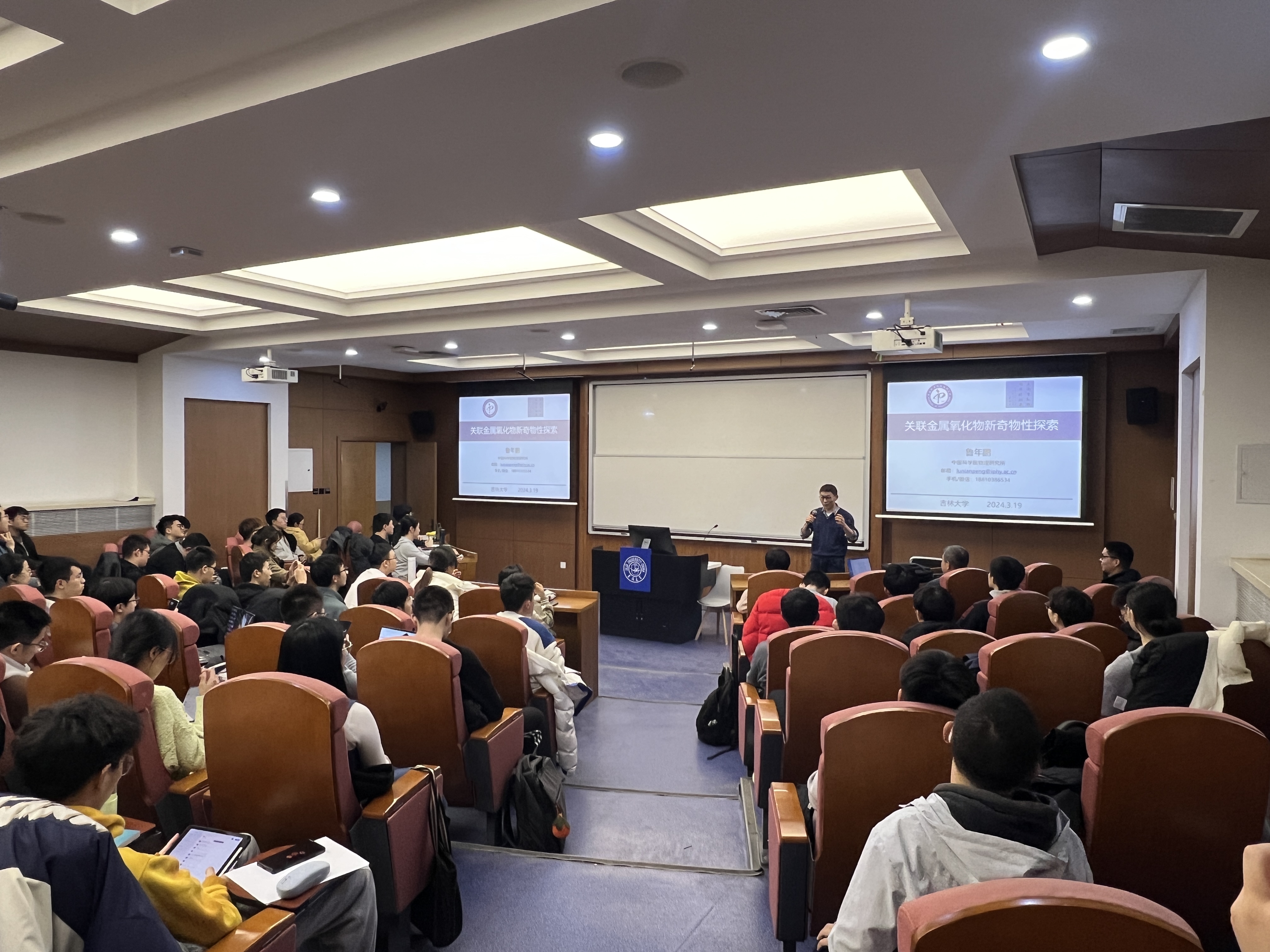19日晚,物理所来访的老师们首先进行了学术交流宣讲会,公司党委副书记兼副经理杨讴菡,本科生辅导员刘扬、车禹剑、赵一安出席活动。会场内座无虚席,同学们对宣讲会翘首以盼。首先杨讴菡书记为讲座进行了开场介绍,之后鲁年鹏特聘研究员、韩秀峰研究员先后进行了学术报告,分别介绍了各自领域内的主要进展、前沿问题和各自课题组的主要成果,回答了同学们踊跃的提问,并同同学们对双方关心的学术问题进行深入的交流探讨,会场内气氛热情澎湃。物理所的老师们还准备了物理所的研究生招生宣传册,向到场的同学们分发,针对BG大游2021级同学提出的推免、考研等相关问题进行了解答。同学们由此对物理所有了更深入的了解。