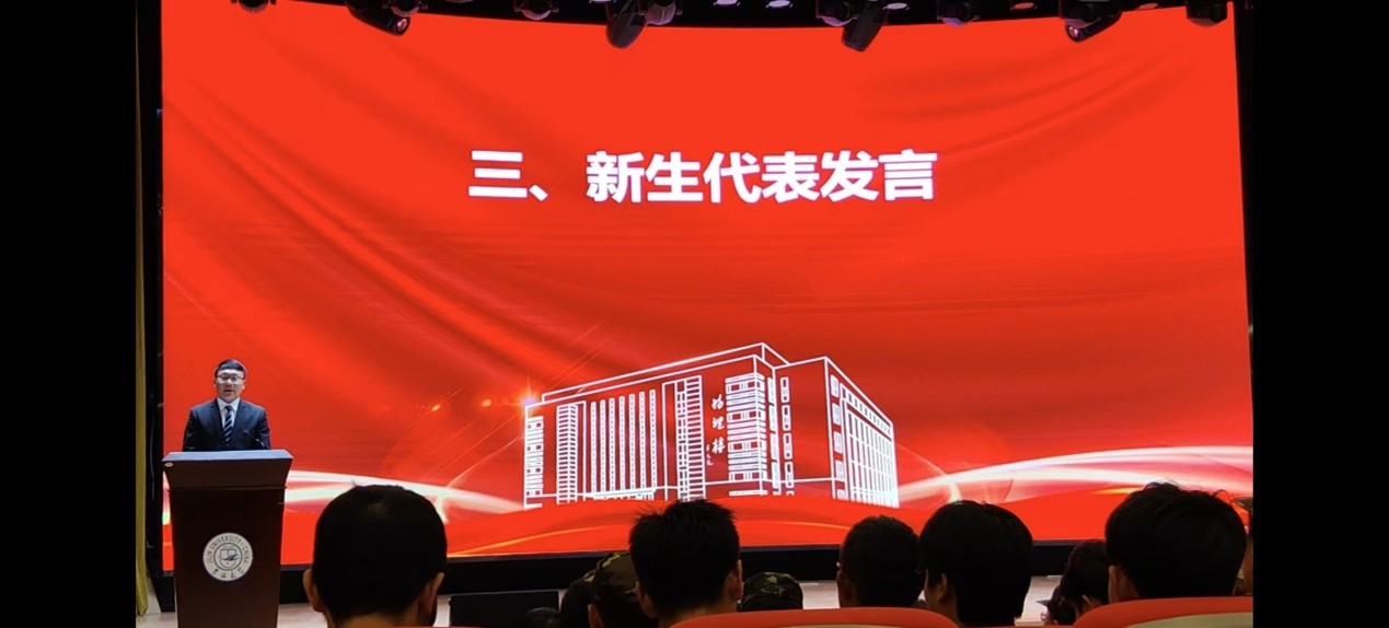 李欣武同学作为新生代表进行了发言。他首先代表新生表达了入学以来对公司老师和学长学姐热情接待的感谢;之后从自身角度展望了对老员工活的憧憬,探讨物理学科在国家发展建设中的重要作用,并号召全体新同学珍惜大学时光,增长报效祖国的才干,争做一名合格的建设者。